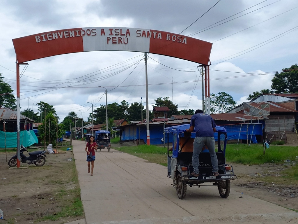 Arriving at the Amazon island of Santa Rosa in Peru