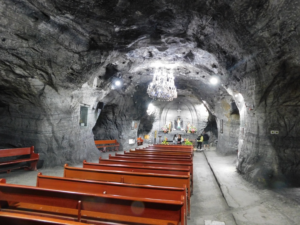 As for the narthex, first of all it is an architectural term used in Christian churches. Simply put, it is a room, akin to a closed porch, leading into the nave or main body of the church. In the case of the Salt Cathedral, the narthex would be a wide tunnel-like space accessed after descending the stairs I have mentioned earlier.