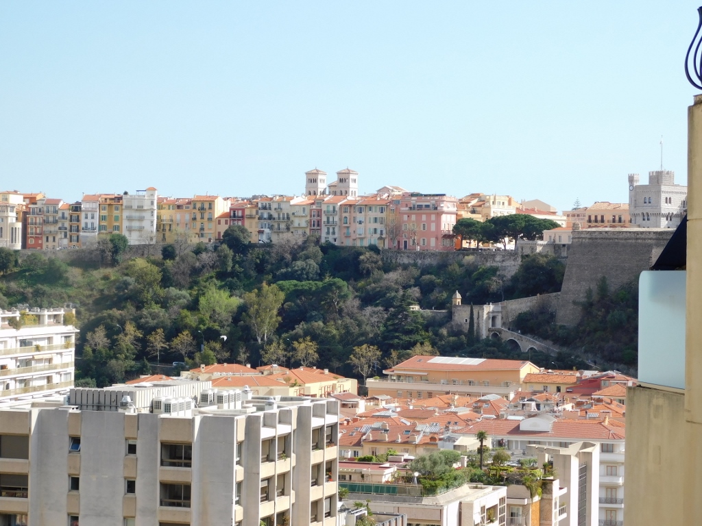 Monaco City on the other hill: you can see the towers of the Cathedral and all the way on the left a part of the Prince’s Palace