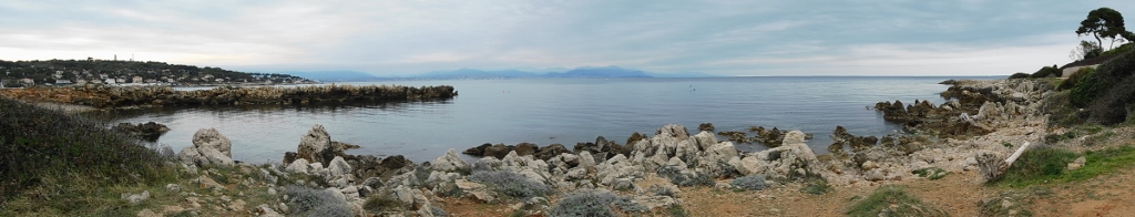 South parts of Antibes: the old part of the town can be seen in the distance on the left-hand side