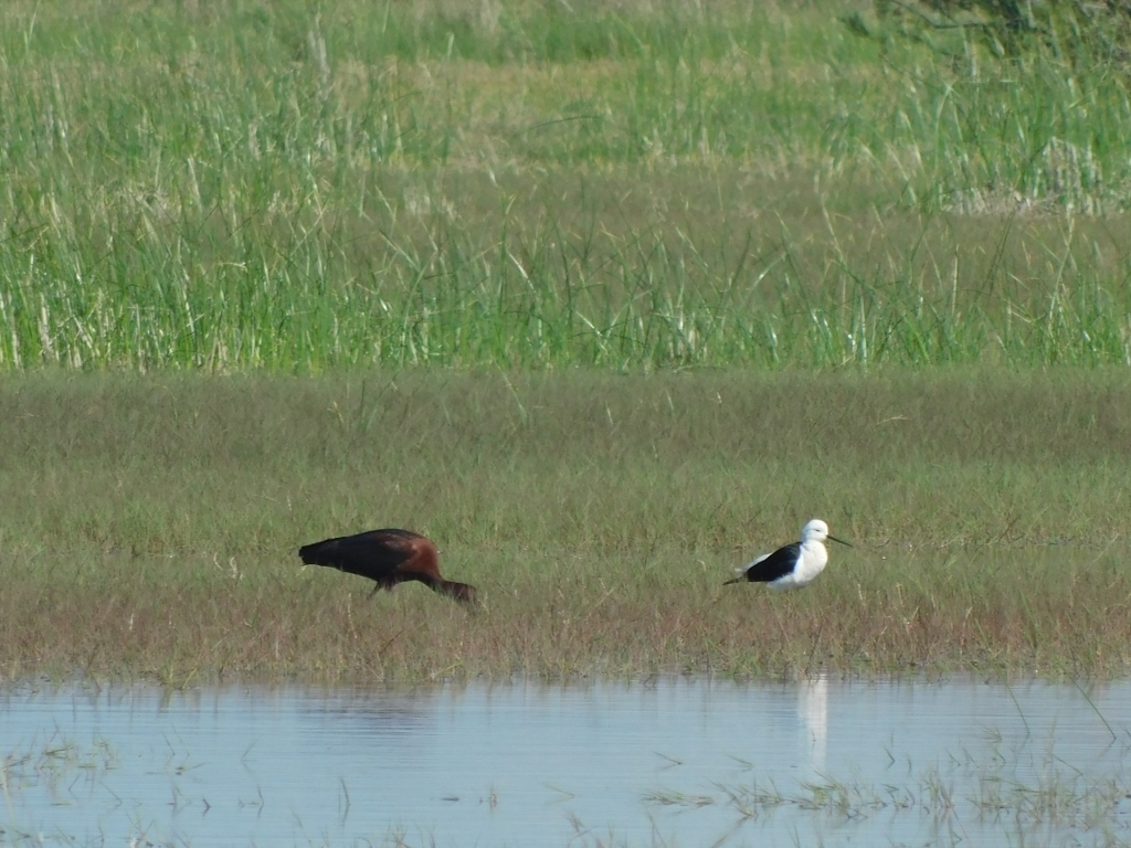 And now a group portrait: a glossy ibis and a black-winged stilt