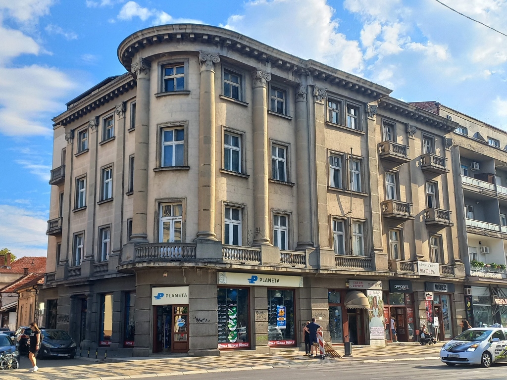 It is one of the most representative buildings in the city centre, built in 1937. The owner was another industrialist, Milan Popović-Tonkić and the building was erected on the site of an earlier family house. Since it had a ground floor and three upper floors, the building also featured a lift – a rather rare occurrence at the time, which added a certain prestige. The building’s charm is enhanced by its rounded corner segment, while the facade is further accentuated by attached columns and pilasters. The building was damaged during the Allied bombing in 1944 and after World War II it was restored. The upper floors were converted into rooms and a hotel was opened there (hence the name under which the building is listed as a cultural monument), while the ground floor housed hospitality businesses. The hotel closed in 2006, while the ground floor now contains various shops.