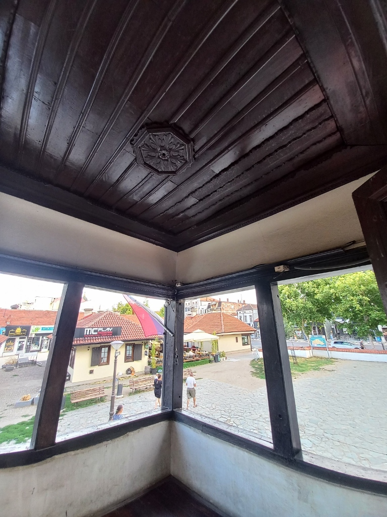 And now, finally, back to the story of the Šop Đokić House. The Šop Đokić family lived there from 1820 until 1956, when the house was partially confiscated and eventually nationalised. The building was constructed using the bondruk structural system (a timber-frame technique), and its multi-pitched roof with pronounced eaves is covered with ćeramida (a type of traditional roof tile). The house has a ground floor and an upper floor, and one of its most striking features is the divanhana (an open sitting area) on the upper floor, which faces the courtyard.