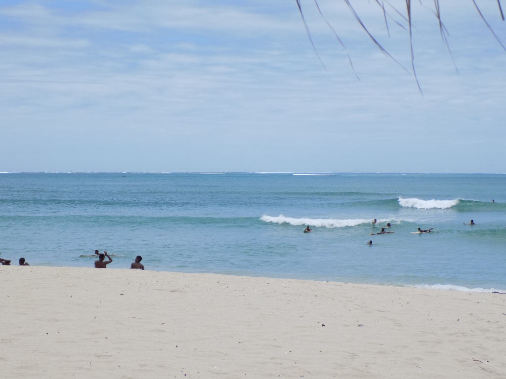 In the afternoon the ocean became somewhat wavy again, but in a slightly different manner than the day before and this time around local children enjoyed the waves which they could surf using some boards they had.