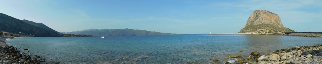 Then I went to the part of the coast north of the causeway where the beach is located and from there I took the paved road leading to Monemvasia.