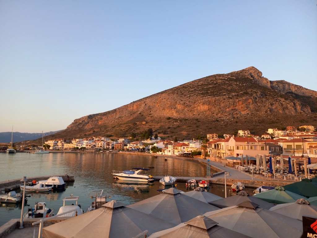 However, even though I had designated this as a free day, it didn’t mean I would spend the entire day on the balcony. Soon, it would get too hot there anyway. I gradually got ready and then drove less than 40 km to a port where a ferry goes to the small island of Elafonisos, which has a settlement with restaurants and two beautiful beaches. My plan was to check it all out and also take a swim, as the forecast predicted temperatures over 30 degrees C. It was the second half of September, but I was in the very south of Greece.