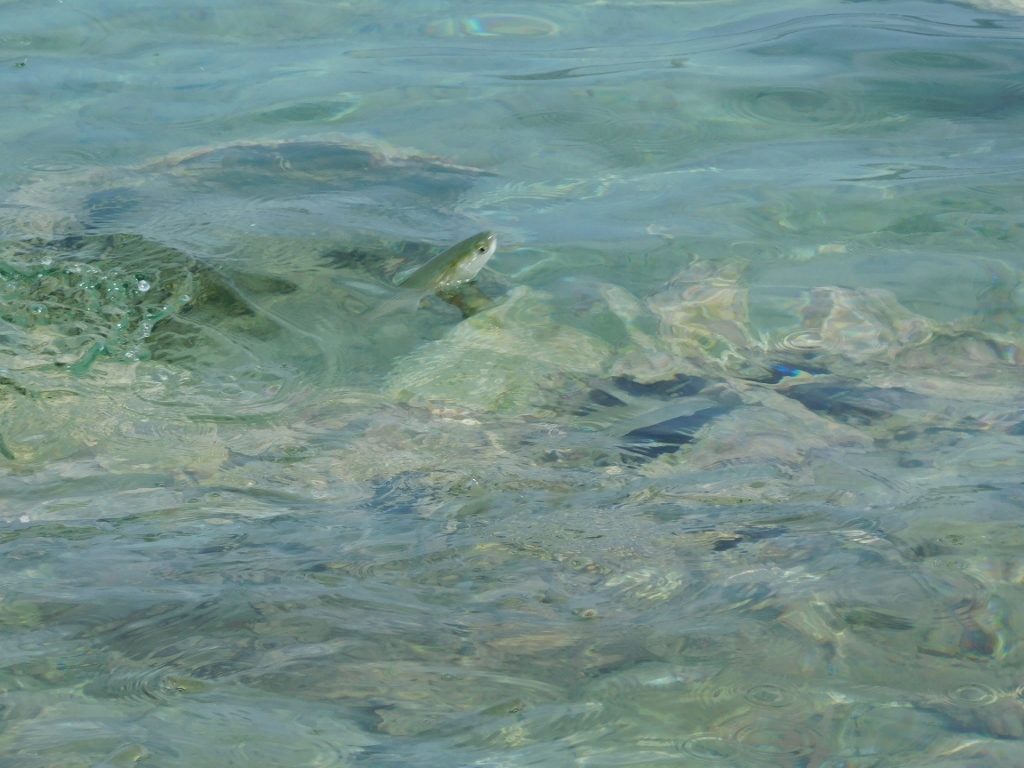 I stayed there for a relatively long time, feeling wonderfully relaxed, occasionally watching the fish in the shallows that were behaving strangely, at least to my eyes – often poking their mouths out of the water as if they were breathing. Later, I learned that these were flathead mullets (Mugil cephalus). I was so fascinated by their behaviour that I had to include a couple of photos to illustrate it all better.