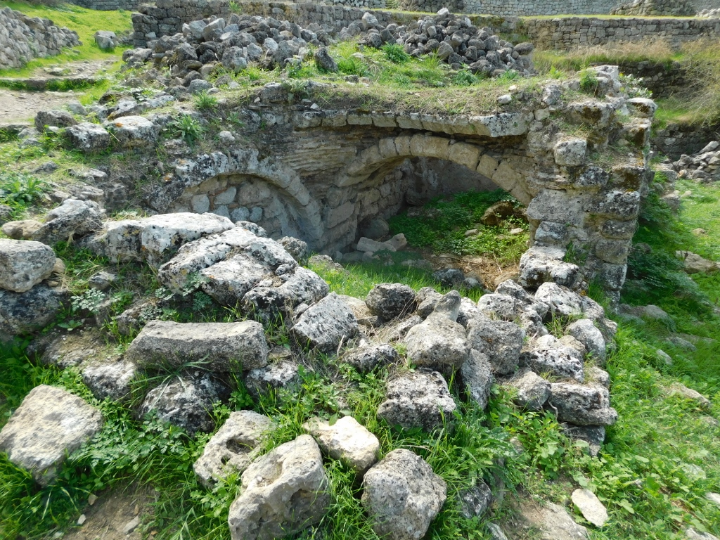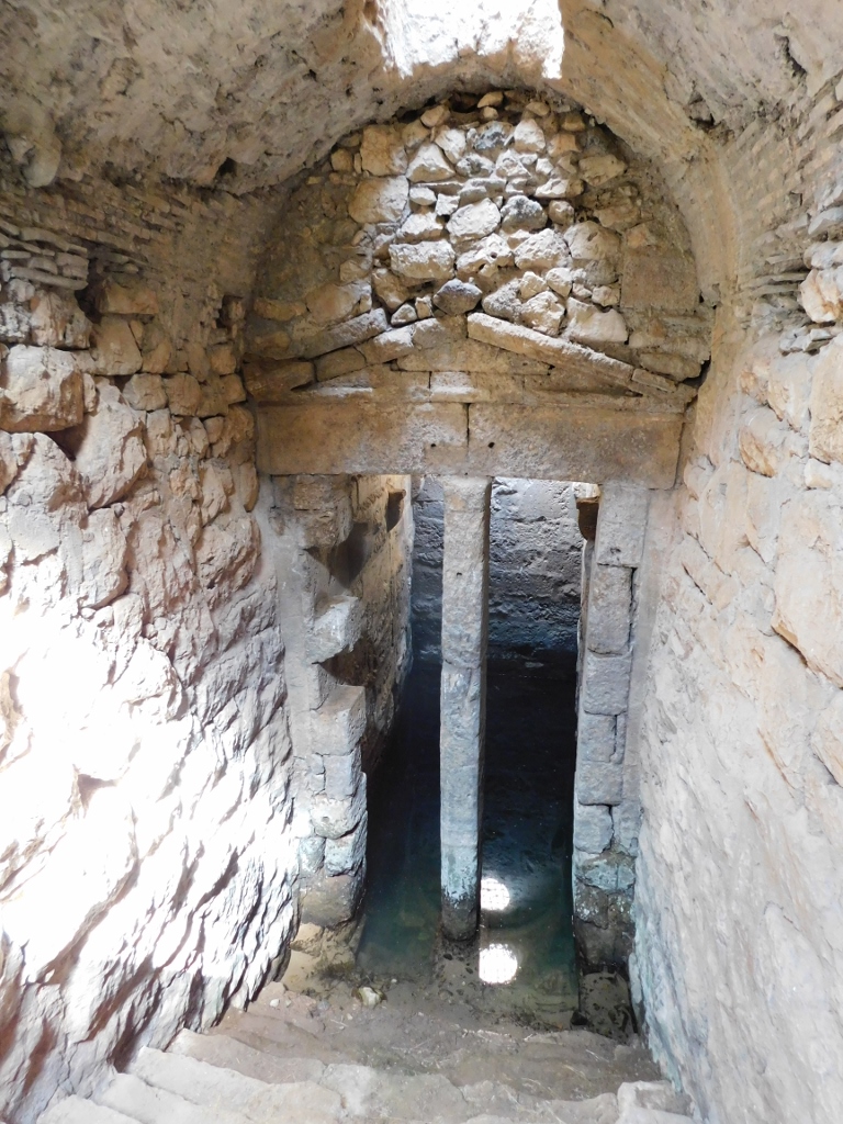 Today, here, buried in the ground, you can see the remains of a Hellenistic structure, with some Roman elements, and certainly others must have added to it over time, as the spring still provides water year-round. For any fortress, a regular water supply was of crucial importance. In any case, I took a pleasant walk there. On the left side of the previous photo, you can see a part of the Venetian barracks, while further along, parts of the ramparts are visible.