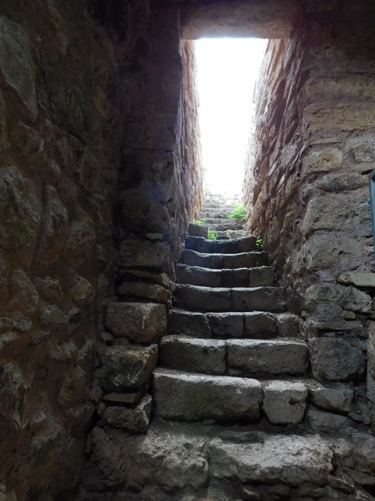 The path first led me to underpinned parts and, between them, there is a passage, that is, stairs that lead to a flat, fairly wide plateau.