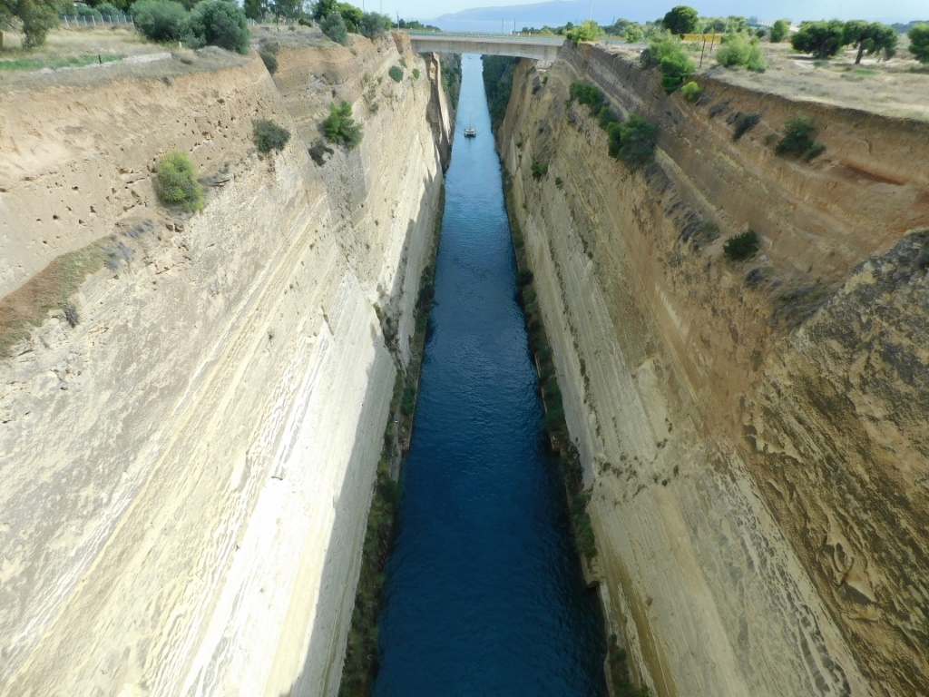 As for me, I had finished my visit to Ancient Corinth, so I drove just under 13 km east to the Corinth Canal.
