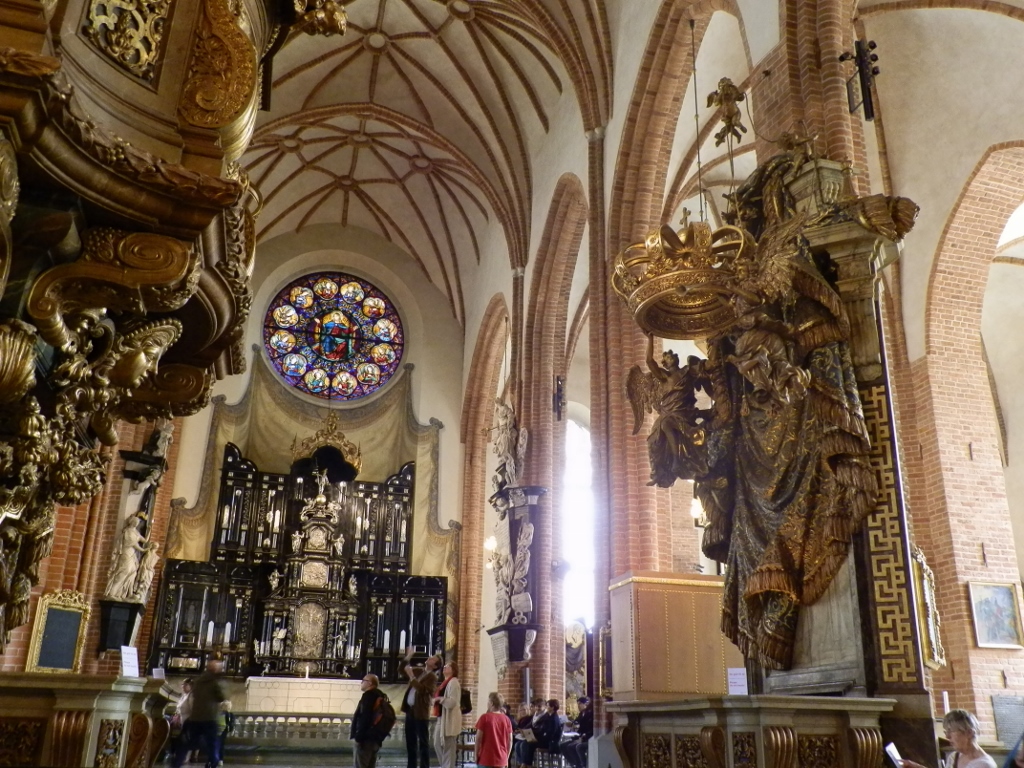 The interior of Storkyrkan is rich with historical and artistic details that testify to its significance. The main altar dates from the mid-16th century and is crafted in the Dutch Renaissance style, featuring impressive wood carvings and gilding.