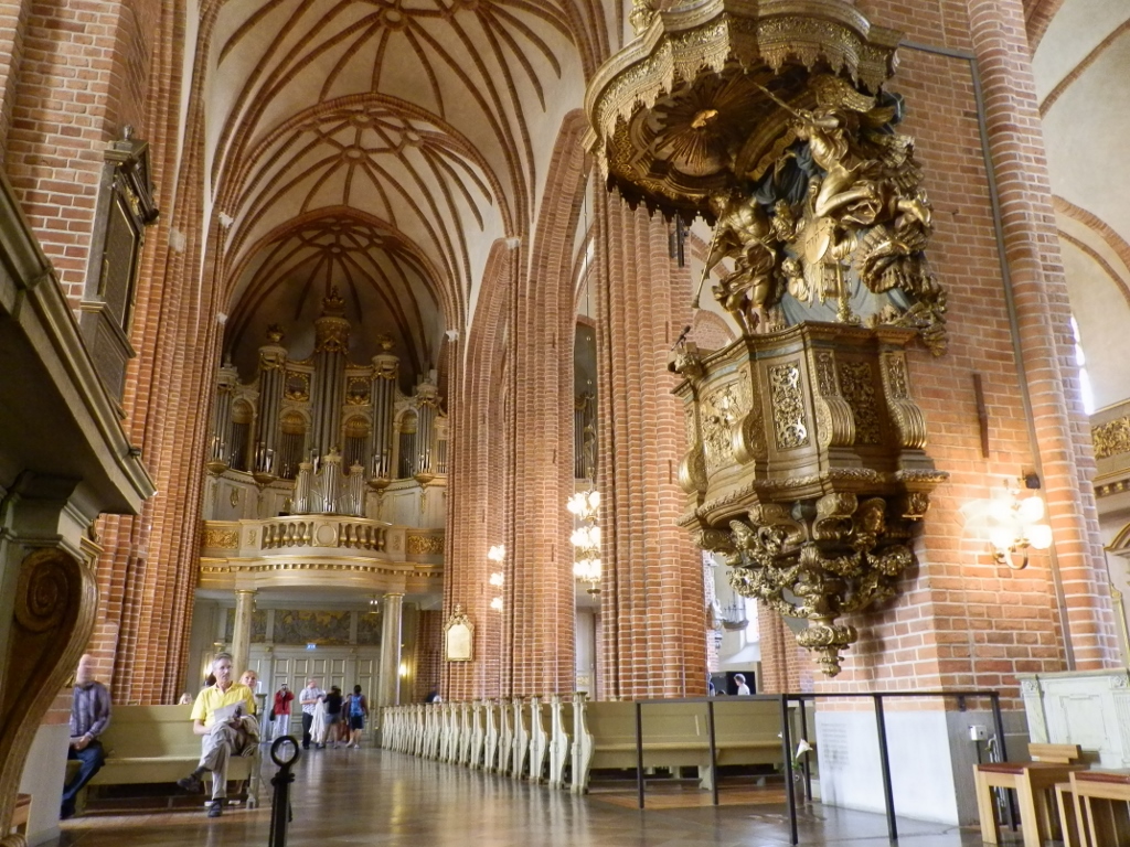 Storkyrkan, meaning “Great Church,” is the oldest church in Stockholm and, as I’ve mentioned, is located right next to the Royal Palace. It was built in the 13th century and for centuries played a central role in Sweden’s religious and state life. Royal coronations, weddings and other important ceremonies were held there, including the wedding of King Carl XVI Gustaf. The church was constructed in the Gothic style, but its interior also features Baroque elements. Today, it is an active Lutheran church, open for services and visitors.
