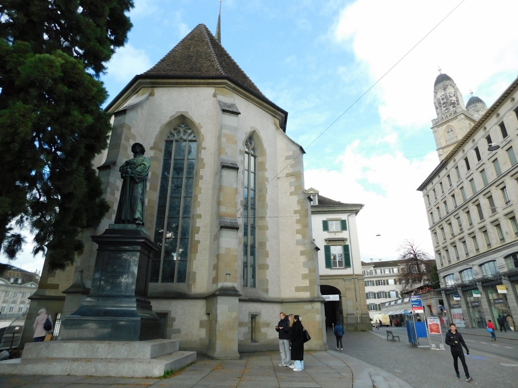Behind it, you can see the monument to Ulrich Zwingli (1484-1531), who was the leader of the Reformation in Switzerland.