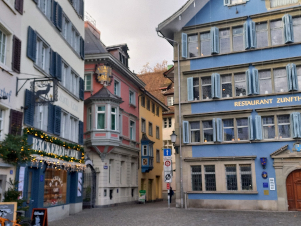 As I walked through the centre of Zurich, I passed by restaurants and some of the dishes I saw on the displayed menus inspired me. Moreover, I realised at this point that I was hungry. However, I first finished my walk along the lake and then I returned to a restaurant. Along the way, I took more photos of parts of central Zurich.