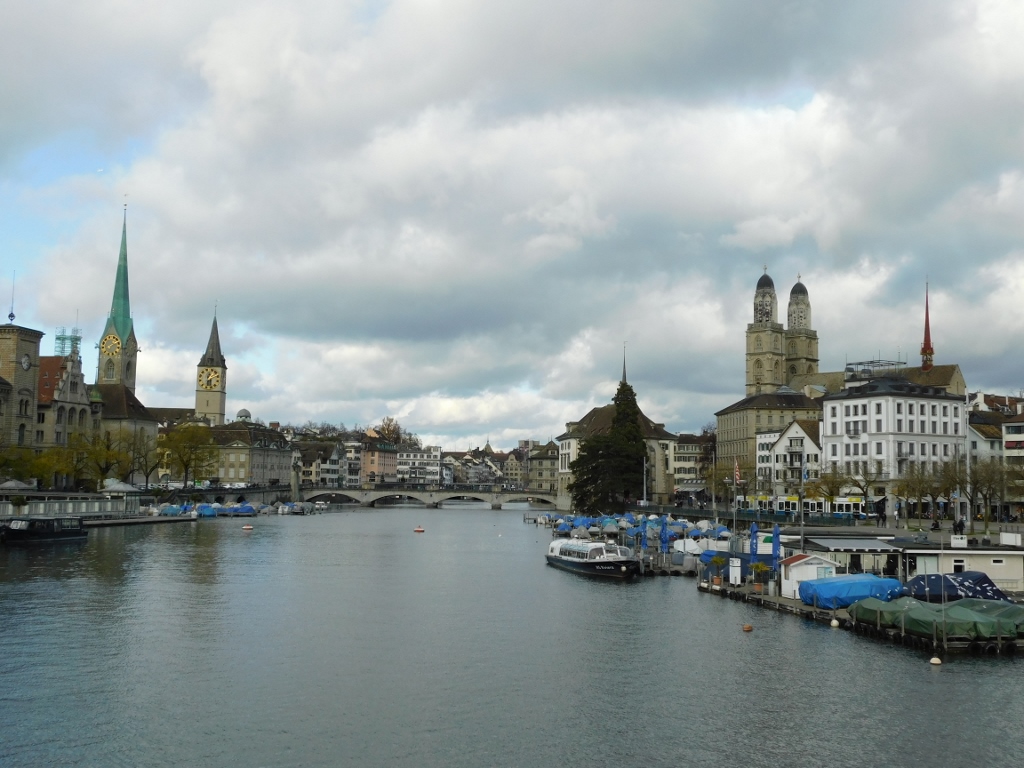When I entered the room, I left my things there and just took a few small items that I thought I may need throughout the day, and then I headed out for a walk. Very close to the building where I had rented the room, there is a bridge over the Limmat River, which actually flows out of Lake Zurich. From there, I had a wonderful view of some of the central parts of the city.