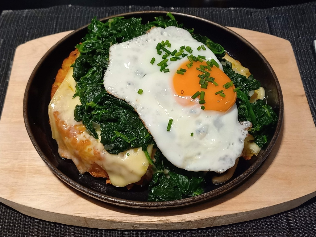 Although various meat options are offered in all the restaurants, what really inspired me to eat was rösti or Swiss-style potatoes. An additional reason I chose this dish was that it included the famous Swiss cheese that melts perfectly – raclette. The rest was a delicious garnish.