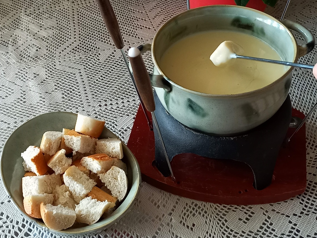 I had already eaten cheese fondue before and since I really love cheeses, this could definitely be one of my favourite dishes if I had the opportunity to eat it often. As it is, it’s almost an "exotic" dish that I indulge in only occasionally, although it did inspire me to try making it at home. Some time ago in Paris, I bought a set for meat fondue (fondue bourguignon), but the principle is practically the same and what matters to me is having a burner and a stand.