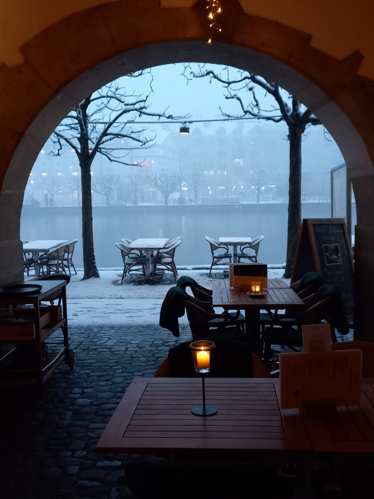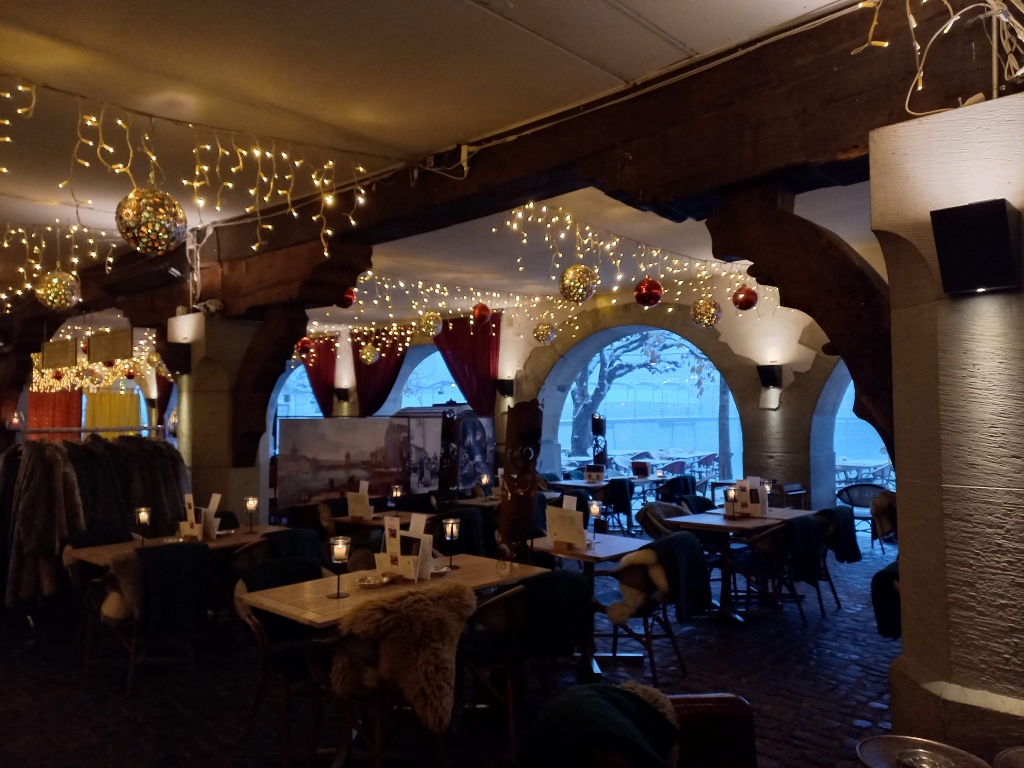 With a wonderfully full stomach, a little later I went back outside with the intention of walking around Lucerne some more. What I hadn’t previously photographed, but did now, were the open parts of the restaurant that were already prepared to welcome evening guests. Everything was beautifully decorated and seemed quite romantic, but... What I couldn’t understand at all was that I didn’t see any heaters, except for the fur on the chairs and some coats, which I assumed weren’t hung there just for decoration. Despite the melted, hot cheese, any kind of meat and drinks, sitting outside in the cold weather would not have been enjoyable for me at all.