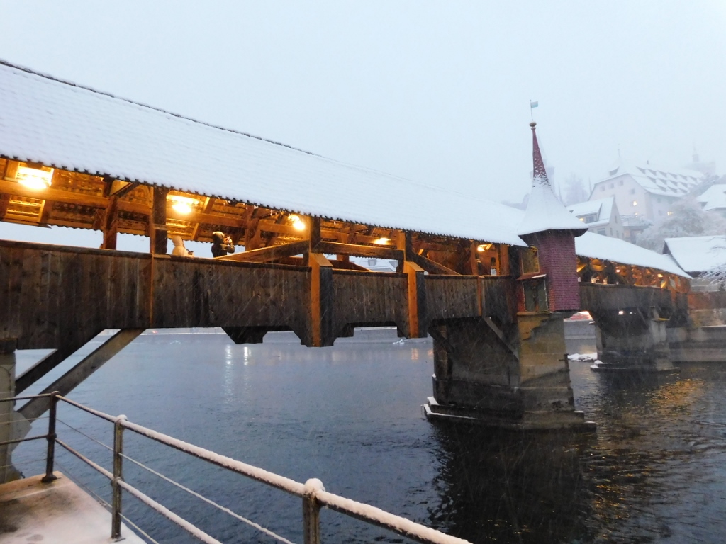 And so I came to the already seen Mühlenplatz, which was now completely covered in snow. The Spreuerbrücke bridge practically starts from this square.