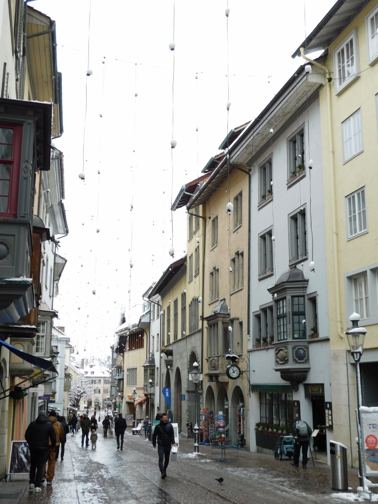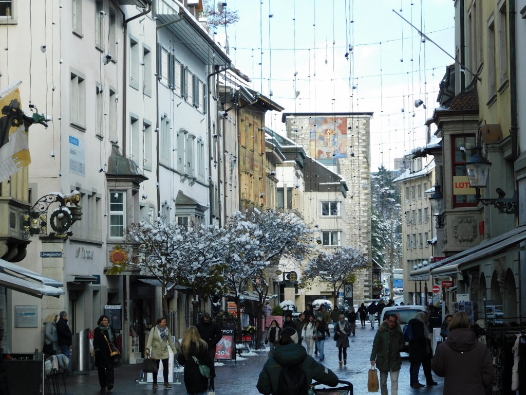 The simplest and most direct route to the station was via the pedestrian bridge over the Limmat River in Zurich and since it had snowed the previous day, the views were very beautiful.
