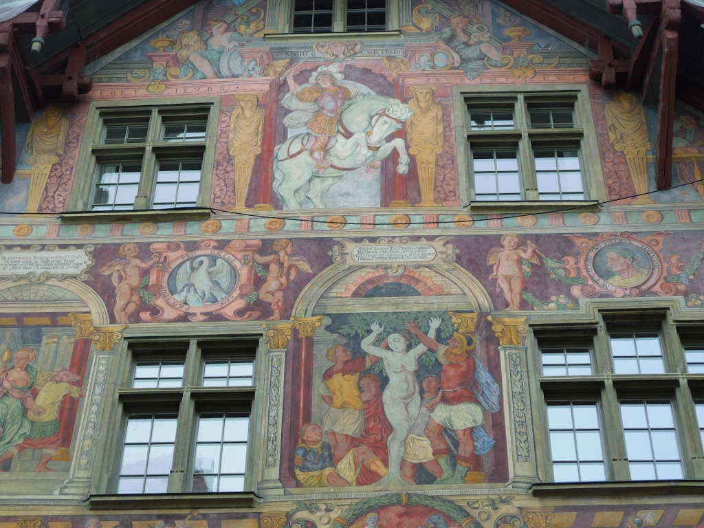 From here, I took one of the main streets heading east, Vodergasse, which is beautiful on its own, but it also features the particularly impressive "Knight’s House" or Haus zum Ritter.