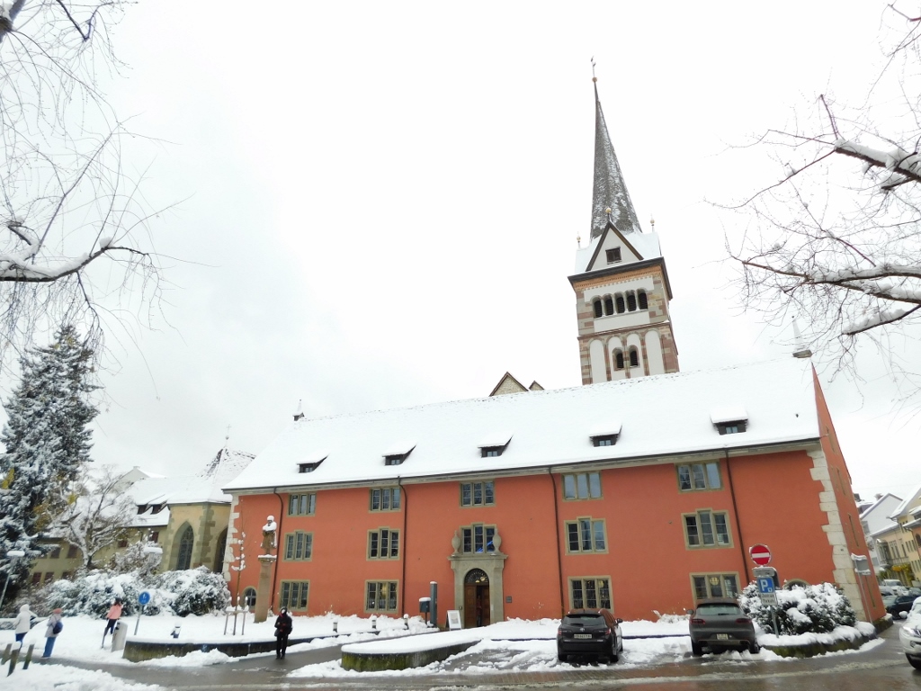 I then wandered a bit into some side streets, but I didn’t have much to walk. The centre of Schaffhausen is a small area, so it’s easy to see some of the most interesting buildings. One of them is the All Saints’ Church, but I approached it from the side of the City Library.