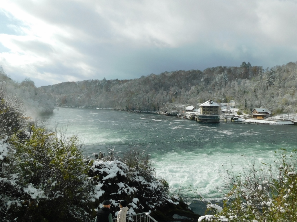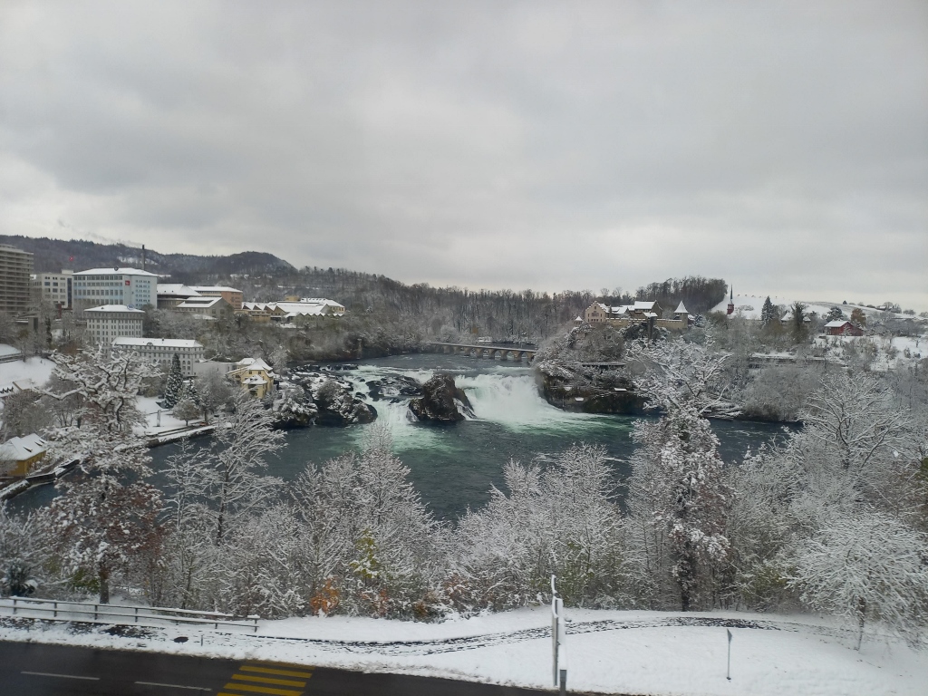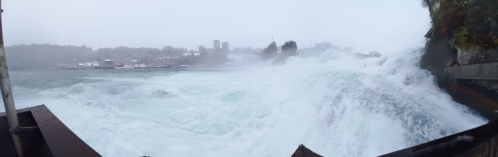 The only thing I could add is that by then, snow had started to fall more intensely. It was fine, but still it was quite a heavy snowfall. However, I managed to make a few video clips, which I compiled into a short recording from the left bank of the Rhine. In the video, you can not only see the powerful waterfalls, but also how heavily the snow is falling and how the platforms on this side of the river are set up, where it almost feels like you could touch the river with your hand.