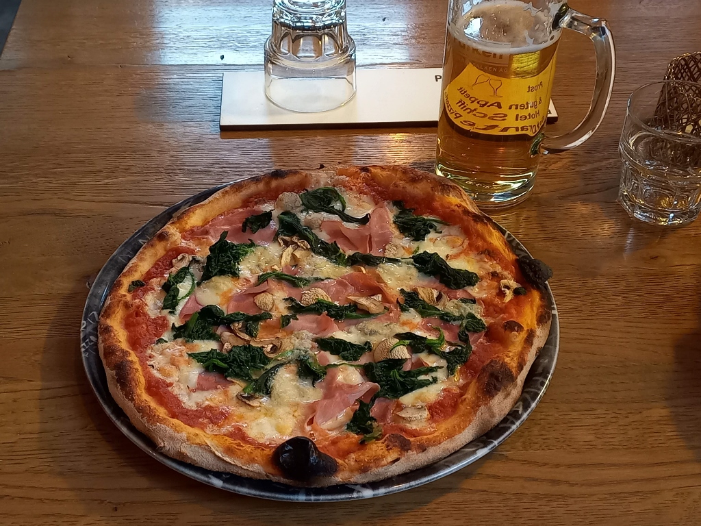 Eventually I came to a hotel by the promenade along the Rhine and their kitchen was open all afternoon. Although they offered some Central European food, I ended up choosing an Italian pizza and I must say it was truly outstanding. I don’t know who their head chef was, but I wouldn’t be surprised if he were a Neapolitan. The pizza was that good. And of course, pizza is best paired with beer, while for me it was also important to keep an eye on my hydration.