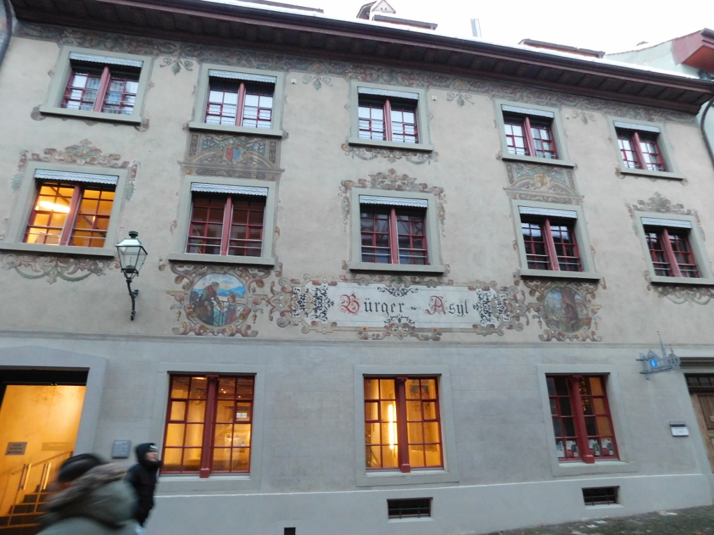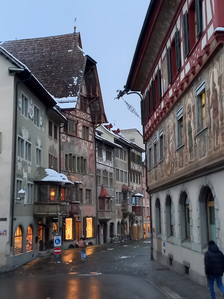 The town of Stein am Rhein doesn’t have much to offer – everything kind of boils down to the main street and the square. But... it’s all so beautiful, fairy-tale-like and picturesque, that it was no trouble for me to walk through it again and take more photos. I also explained this to myself by the fact that it was late afternoon, so there was less natural light, while the artificial lights in the shops had turned on, which only added to the picturesque atmosphere. Considering the remnants of snow and the low temperature outside, those lights from the shops further inspired me, creating the impression that there was a fire burning inside and that one could warm up nicely there. Very primal impressions indeed!
