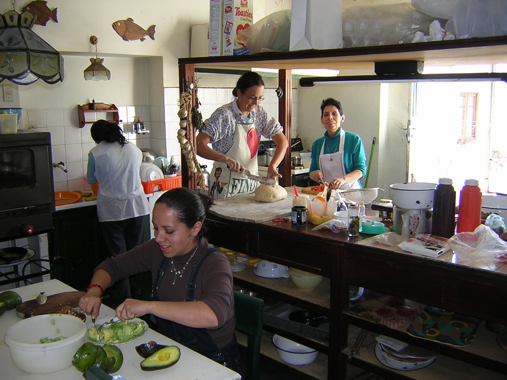 Afterwards we went back home and brought into the kitchen all the things we had bought. And then we helped ourselves to some sweets Señora Maria had already made earlier – cookies and meringue made with ground coca leaves. Coca no es cocaina!