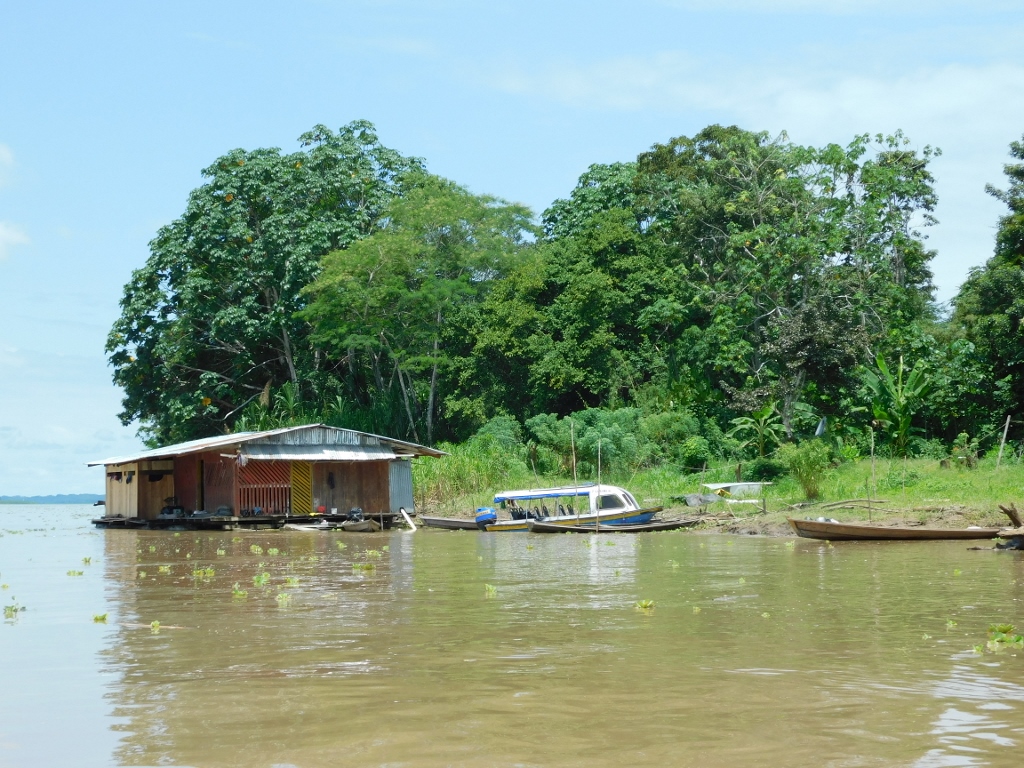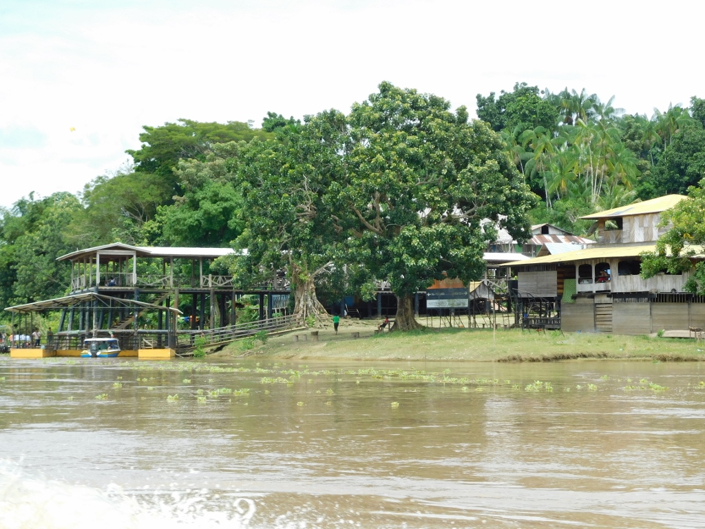 Ali, osim što ima lokalnog stanovništva koje živi na obali Amazona, tu dolaze i posetioci iz raznih delova sveta, a za njih treba obezbediti i smeštaj. Na sledećoj fotografiji se, osim objekata uz obalu, može gore desno videti krov znatno veće kuće, a na sledećih par fotografija se još i bolje mogu videti različiti veći objekti koji se verovatno koriste u turističke svrhe.