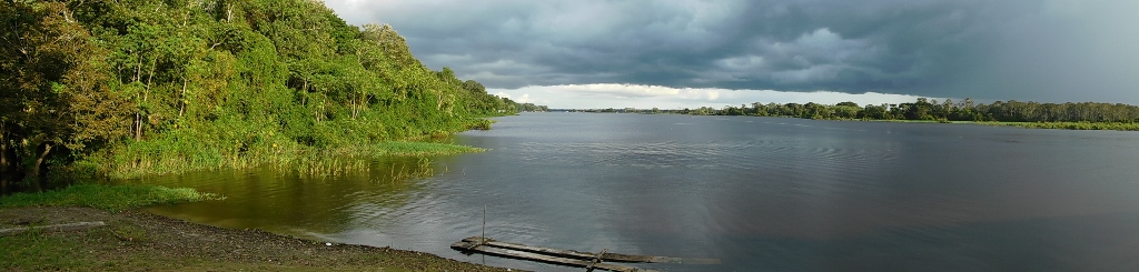 Pogled sa pristaništa: levo se vidi glavni tok Amazona, a desno je taj rukavac