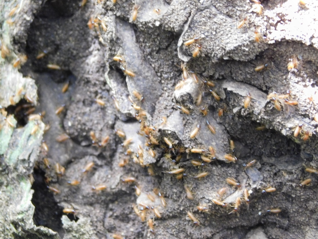 Nedaleko smo ponovo ugledali termitnjak na drvetu, ali su se ovde lepo videli i njihovi tuneli koje grade bilo po tlu ili po stablima. Ovi koji se vide na sledećoj fotografiji vode do njihovog gnezda.