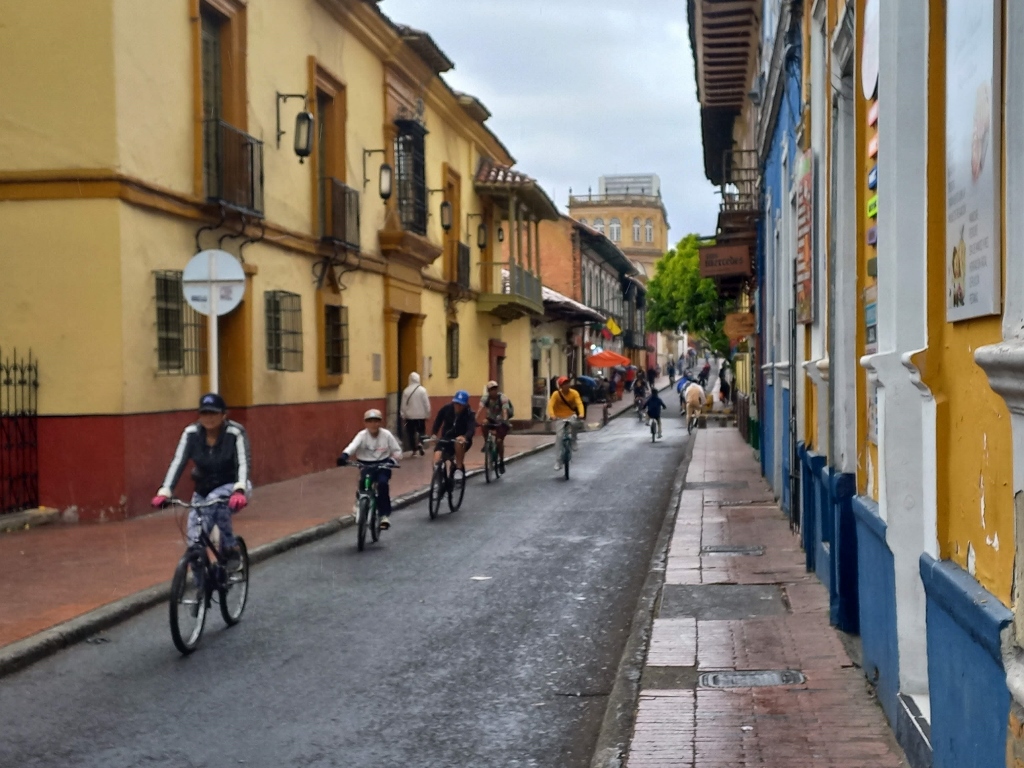 Na prethodnoj fotografiji mogu da se vide biciklisti kako prolaze ulicom. Ovog dana, a bila je nedelja, susrela sam se sa izuzetno lepim običajem u Bogoti. Kako mi je kasnije jedan taksista rekao, preko 30 godina se značajan broj ulica u Bogoti, ne samo u istorijskom centru, već i neke velike ulice po drugim delovima grada, zatvaraju od 7 ujutru do 2 popodne (nedeljom) da bi se omogućilo biciklistima da nesmetano i bezbedno uživaju u vožnji svojih dvotočkaša.