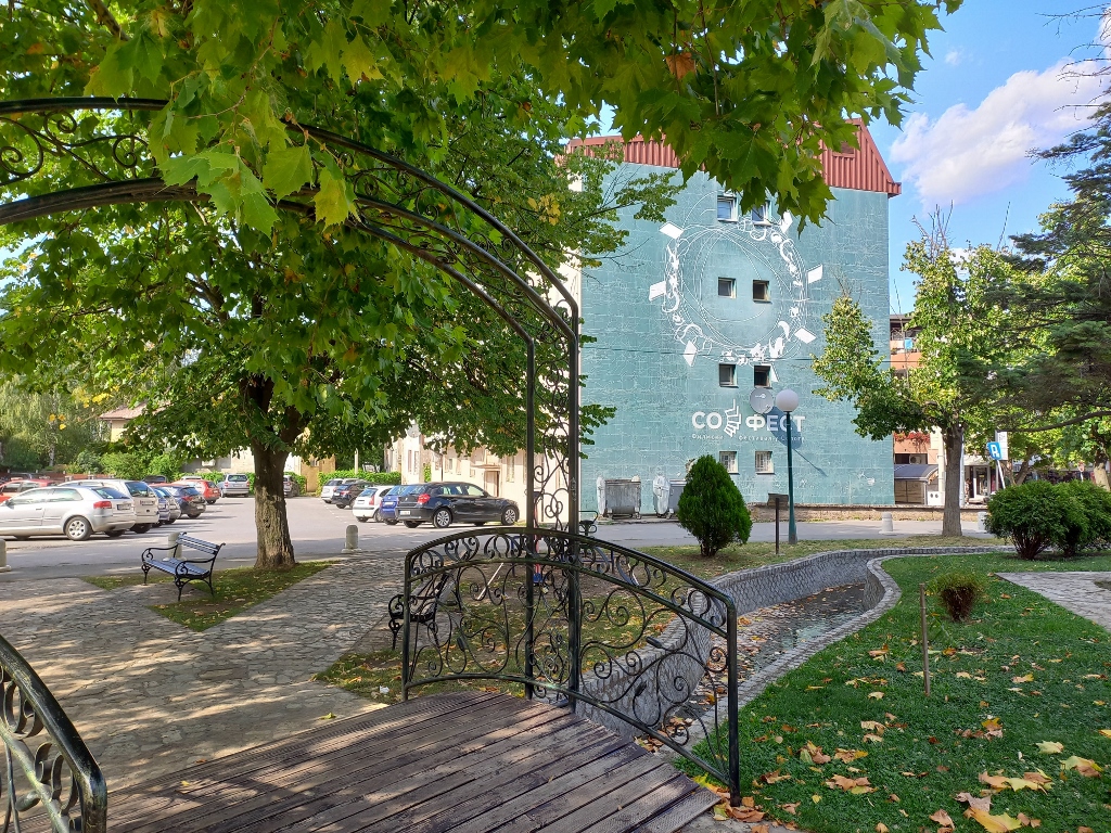 Tačno preko puta opštinske zgrade nalazi se moderna fontana, a odatle smo nastavili da lagano idemo uzbrdo, prolazeći pored veoma lepih uređenih zelenih i cvećem ukrašenih površina, kao i spomenika koji su bili svuda oko nas.