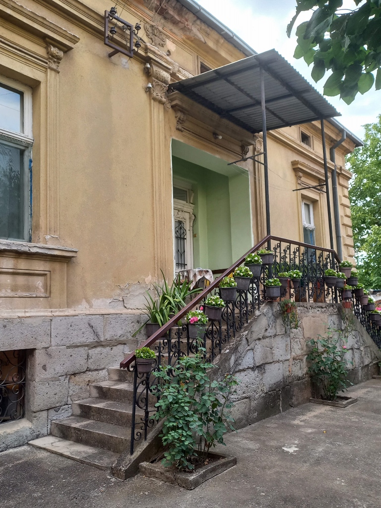 Ona je sagrađena početkom XX veka kao stambena porodična kuća koja se sastoji od podruma i visokog prizemlja, i ima pravougaonu osnovu. Sokl koji prekriva nivo podruma napravljen je od kamenih blokova, a spoljašnja dekoracija je skladno izvedena. U kuću se ulazi iz dvorišta preko stepeništa koje vodi ka uvučenim ulaznim vratima. Koliko sam čitala ta ulazna vrata su posebno lepa zbog bogate dekoracije sa rezbarijom. To se na mojoj sledećoj fotografiji može videti samo delimično.