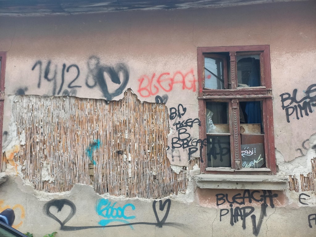 Na jednoj drugoj kući nije bilo lepe fasadne dekoracije, ali mi je bilo zanimljivo da vidim od čega su se nekada pravile kuće. S druge strane, mada je kuća u užasnom stanju, jako su mi se dopali drveni delovi prozora – koliko su se ljudi nekada trudili da ulepšaju ove delove kuća.