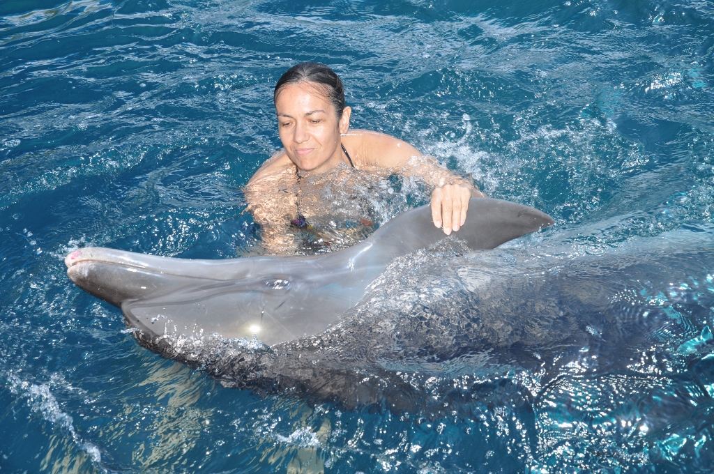Osim ovih retkih šetnji, prve godine sam naletela na ponudu da se pliva sa delfinima. Nisam uopšte znala kako će to da izgleda, ali sam svakako već godinama želela da to iskusim. Međutim, bilo je to za mene ogromno razočaranje. Delfini su naravno apsolutno divni, ali dok sam se približavala bazenu u kojem je par delfina živelo, osetila sam za početak neprijatnu mešavinu nekakvog smrada od riba i hlora koji se koristi za dezinfekciju bazena. Bila sam užasnuta! Jadni delfini. Stvarno mi ih je bilo žao.