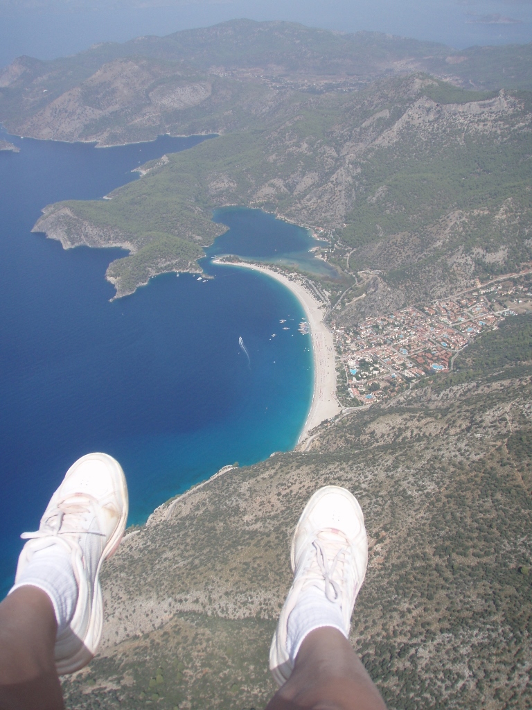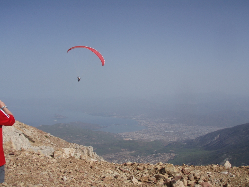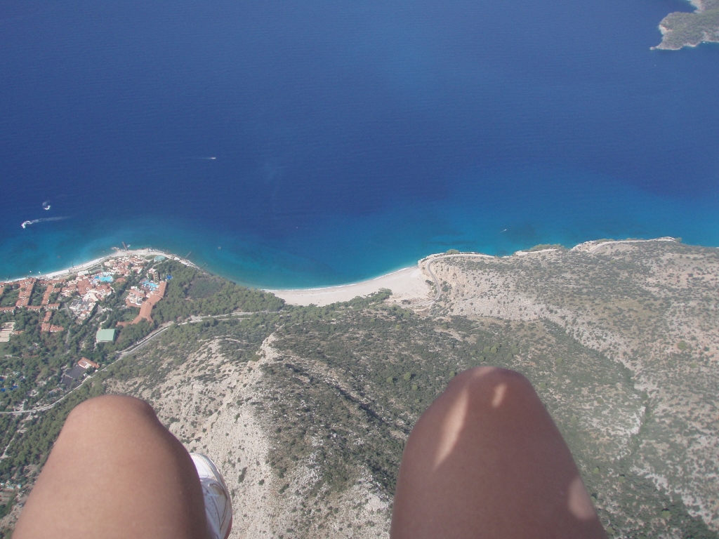Ipak, ubedljivo najzanimljiviji izlet, barem za mene, bio je let paraglajderom sa vrha Babadag koji je visok, kao što sam rekla, skoro 2000 m. Let traje oko 30-40 minuta, a sletanje je na šetalište pored plaže u Oludenizu. U vreme kada sam letovala u Oludenizu, ovi letovi paraglajderom bili su organizovani ujutru i kasnije popodne. Pretpostavljam da je razlog za to leži u vazdušnim strujama. Ja sam se odlučila sa jutarnju verziju.