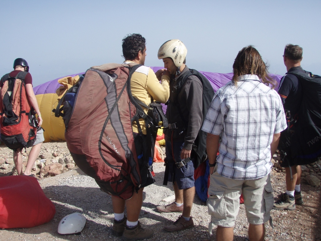Dosta ljudi dolazi na ovaj izlet tako da je na vrhu velika gužva, a piloti pripremaju i paraglajderska krila i turiste-letače. Ovde je u pitanju tandem-paraglajding, što znači da dve osobe lete koristeći isto krilo. Konkretno, piloti upravljaju sve vreme krilom, dok „putnici“, tj, turisti-letači samo pasivno lete.