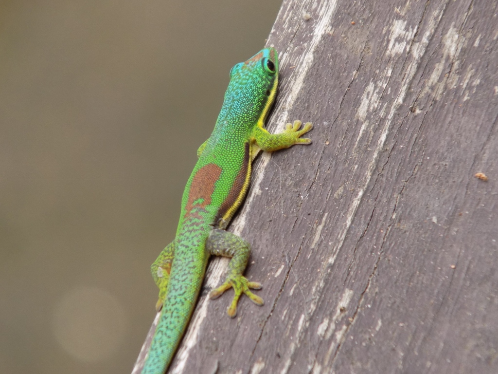 Prošle smo i pored bujnih žbunova nekog mirisnog cveća, a tu sam snimila i jednog prugastog dnevnog gekona (Phelsuma lineata).