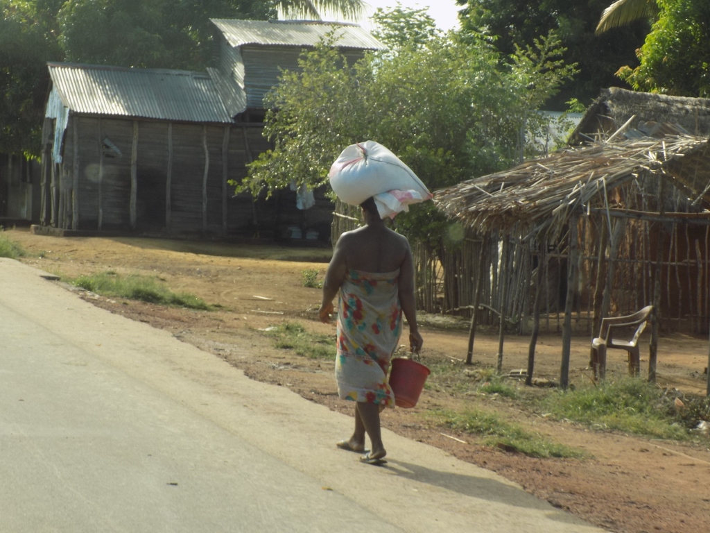 Duž tih skoro čitavih 300 km koliko su ova dva grada udaljeni jedan od drugog ima veoma malo sela. Češće se dešavalo da prođemo pored nekoliko koliba napravljenih od blata, slame ili dasaka. Povremeno sam viđala ljude koji leže ili sede na zemlji pored puta u hladovini koju pravi neka nadstrešnica, ali je takođe bilo i onih koji su nešto radili, kao što su bile, na primer, žene koje su gotovo redovno na svojim glavama nosile razne terete. Generalno gledano, bilo je potpuno jasno da Malgaši još kao mali počinju da terete nose na svojoj glavi. Stiče se utisak da to rade samo žene jer se one najčešće tako vide, ali sam povremeno viđala i muškarce, a to nošenje pogotovo većih tereta na glavi ne deluje kao veština koja se može naučiti pod stare dane, mada svakako obezbeđuje veoma pravilno držanje kičme.