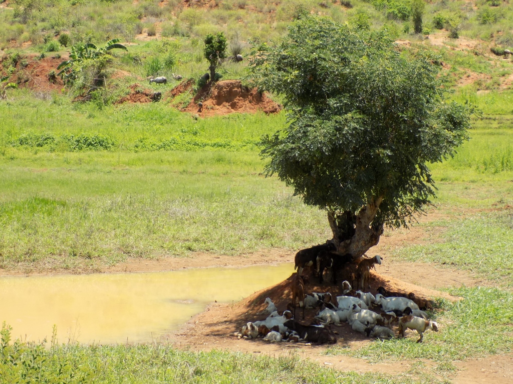 Ovog dana smo se ponovo vozile istim putem kojim smo i došle iz Ancirabea, ali to apsolutno nije umanjilo moje posmatranje okoline i želju da fotografišem, pogotovo kad je bilo nešto meni zanimljivo, kao što su ove koze koje su zbile svoje redove ispod senke drveta jer oko podneva je bilo jako vrelo za sve.