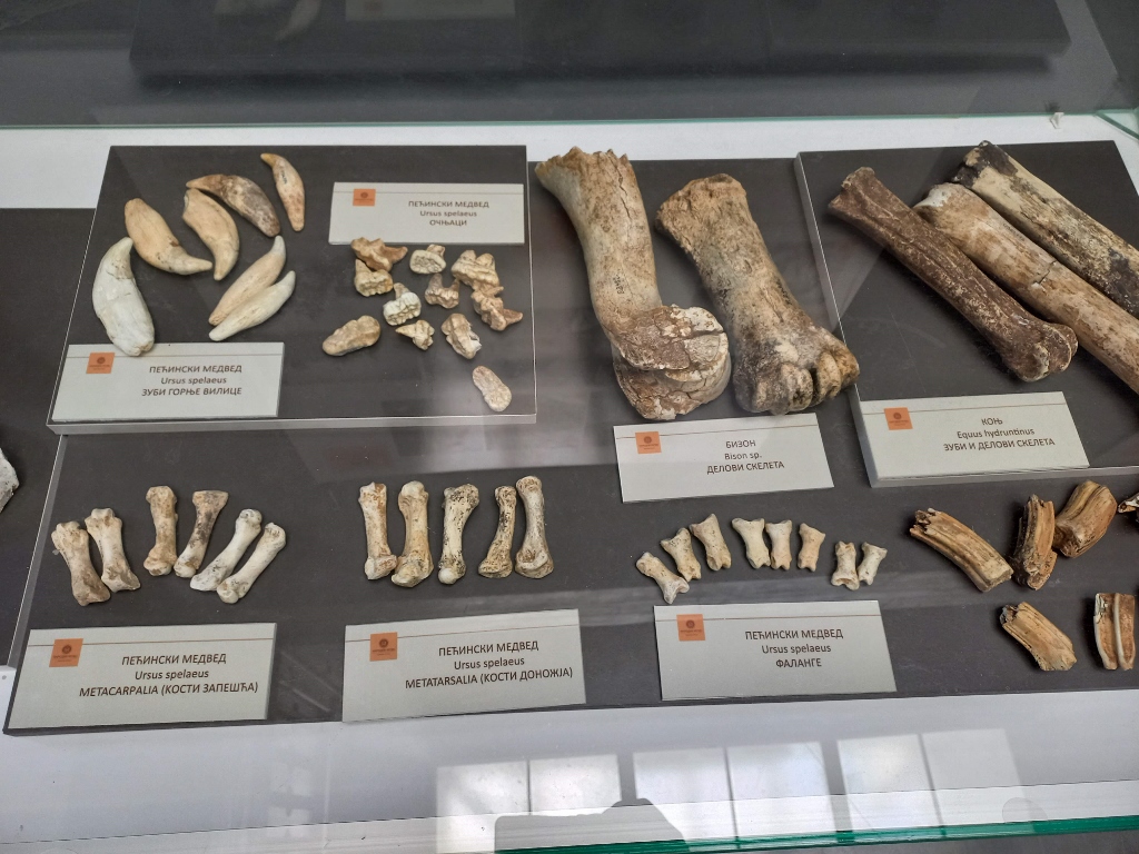 Jedan od značajnih eksponata je i kostur pećinskog medveda koji je sklopljen od originalnih delova kostiju pronađenih u Risovačkoj pećini, a tu se takođe mogu videti i kosti raznih drugih praistorijskih životinja koje su nekada davno naseljavale ove krajeve.