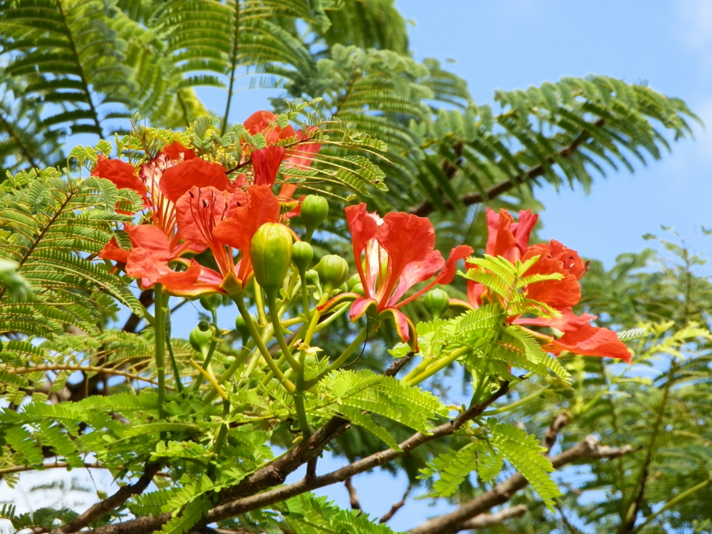 Tu sam uočila još jedno drvo koje sam često viđala u tropskim predelima, a za koje sam vremenom shvatila da je originalno sa Madagaskara. U pitanju je plameno drvo (Delonix regia).