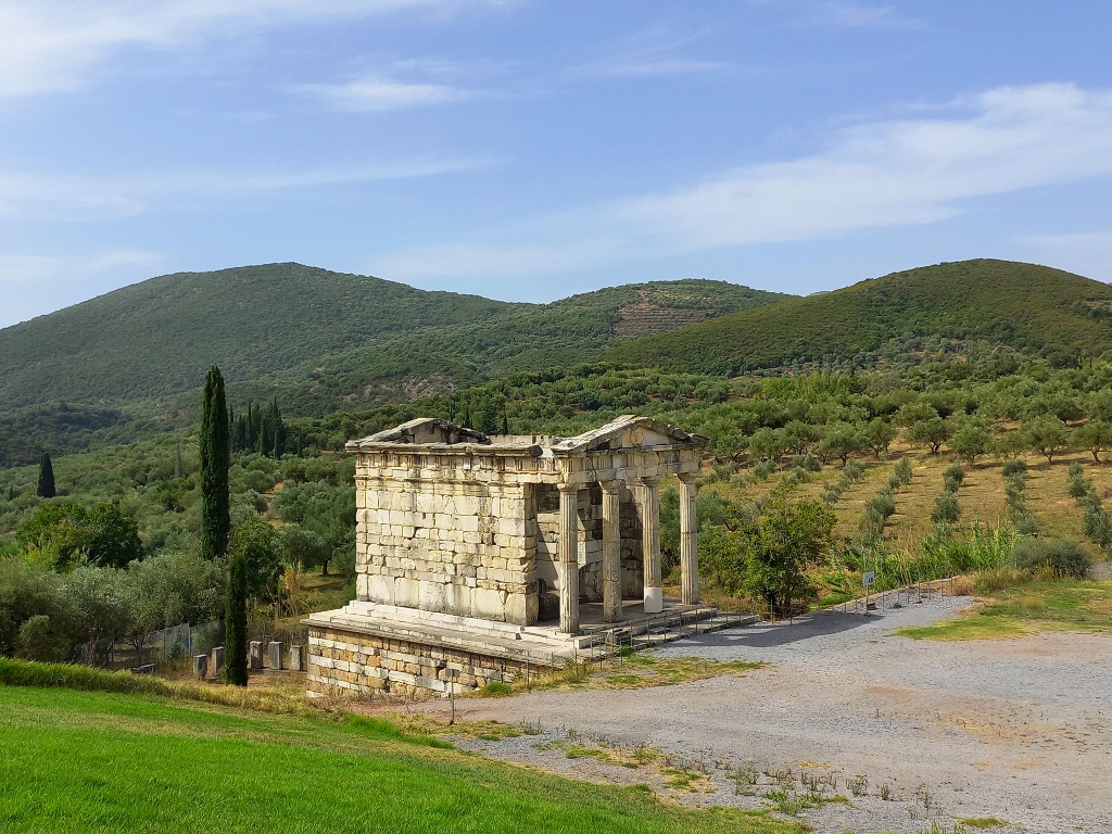 Moram da priznam da nisam uspela da saznam šta grobni spomenik traži u okviru gimnazijuma. Ali, bez obzira na to, spomenik je izuzetan. Napravljen je u III veku p.n.e. za osam pripadnika mesenijanske aristokratske porodice i koristio se do I veka nove ere. Unutra se nalazi osam grobnih mesta.