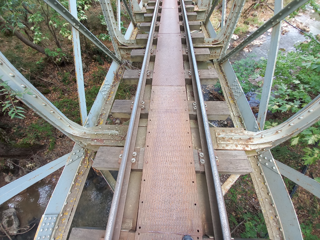 U jednom trenutku sam došla i do prvog od niza mostova koji postoje duž pruge. Na svim tim mostovima je izuzetno važno da čovek dobro gleda gde staje. Svuda jasno postoje široke metalne ploče koje služe kao staza za pešake, ali je ipak bitno da se mostovi pažljivo prelaze. Posebno je to važno kada je pruga otvorena, jer pre ili kasnije može da naiđe i voz, i mada vozovi na ovoj pruzi ne idu brzo, a mostovi nisu dugački, potrebno je da se sve to pređe brzo i pažljivo.