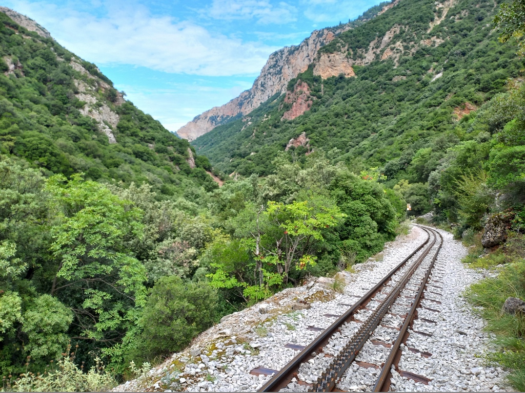 Dok sam se ovde spuštala zajedno sa prugom naišla sam na jedan mladi italijanski par koji je išao u suprotnom pravcu u odnosu na moj, a odsedali u istom hotelu u Dijakoptu gde i ja. Prepoznali smo se i javili jedni drugima, a onda su mi oni objasnili šta su u stvari uradili. Pošto voz ovih dana nije saobraćao, oni su kolima došli do stanice Mega Spilaijo, pa su ih tamo parkirali, a onda se peške malo spustili u klisuru i sada su se vraćali ka kolima. Srdačno smo se rastali i svako je otišao svojim putem.