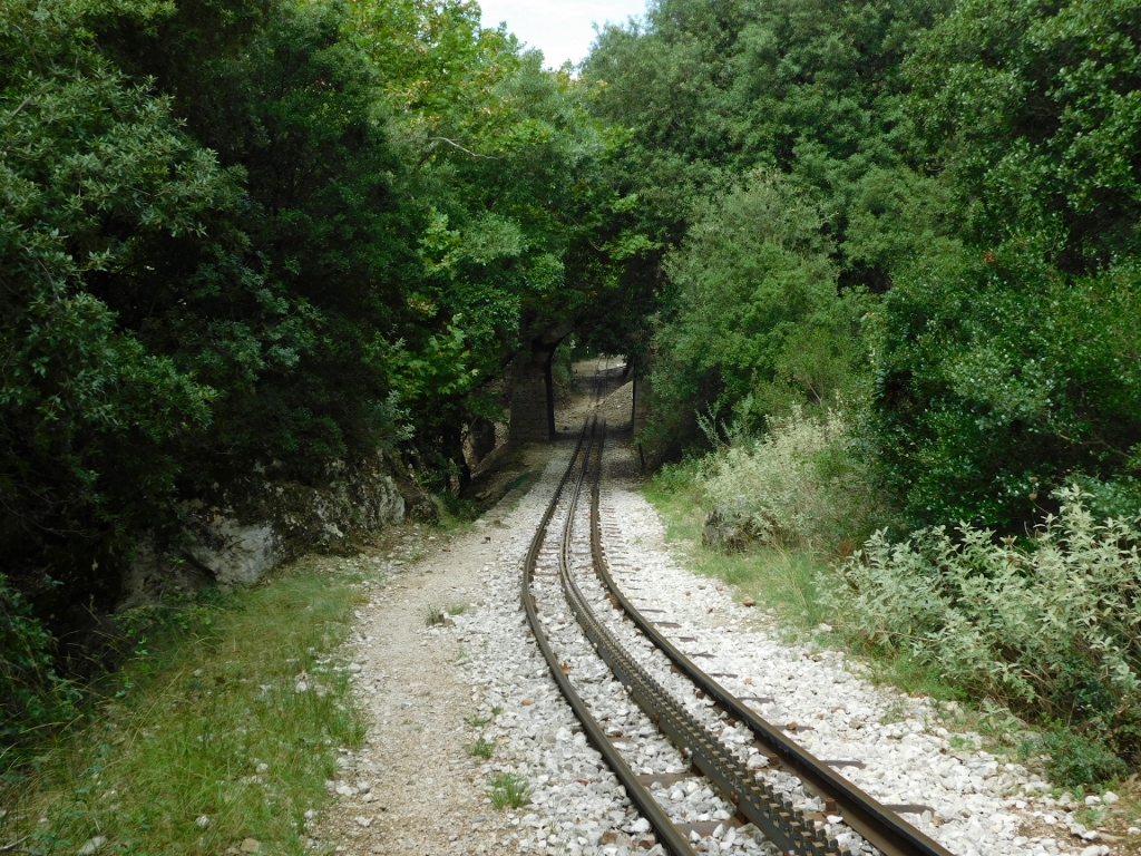 Bez kafe i bez soka, mada sa bocom vode u rančiću, nastavila sam dalje. Pruga ide prvo sasvim ravno, a onda se malo penje, da bi posle oko 1,5 km došla do mesta gde se naglo spušta. I zbog tog naglog spuštanja, kao i zbog penjanja kada voz ide u suprotnom smeru, ovde je po sred pruge postavljen poseban mehanizam i treća zupčasta „šina“ koji omogućava vozu da lakše i bezbednije prođe tu deonicu. U pitanju je mehanizam koji se primenjuje kod takozvane zupčaste železnice, a primenjuje se kada su nagibi veći od 7%. Ovo je veoma bitan deo čitave pruge i njene konstrukcije, a to takođe znači i da voz u ovom delu ide izuzetno sporo, ali važna je bezbednost.