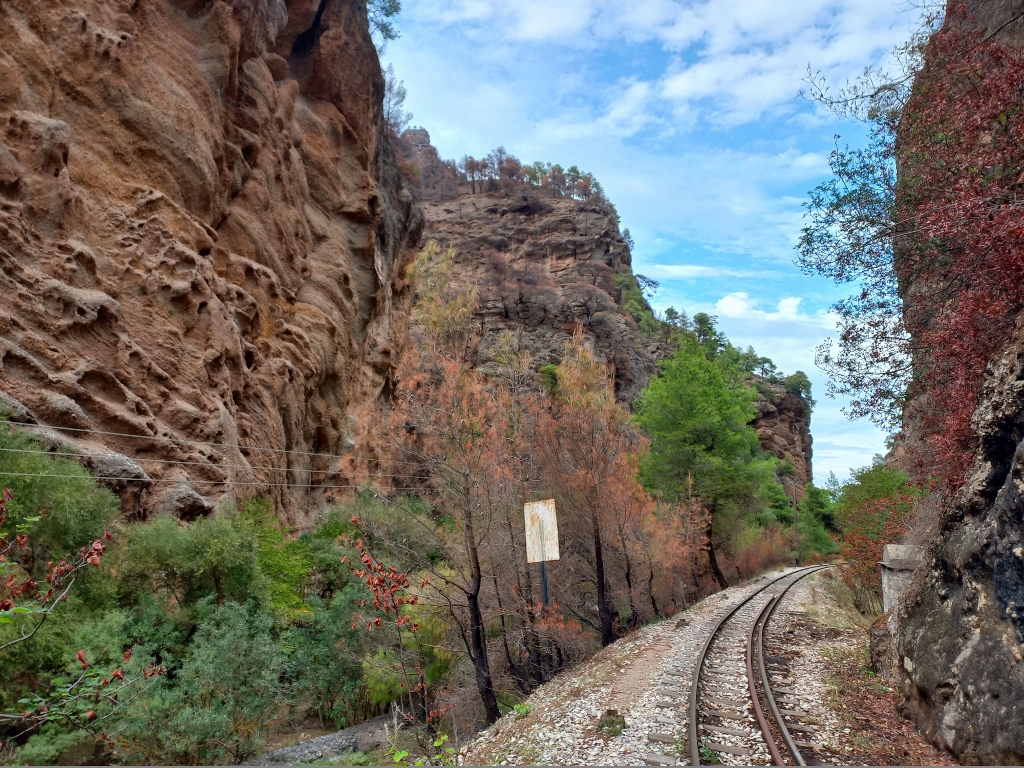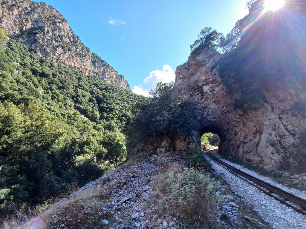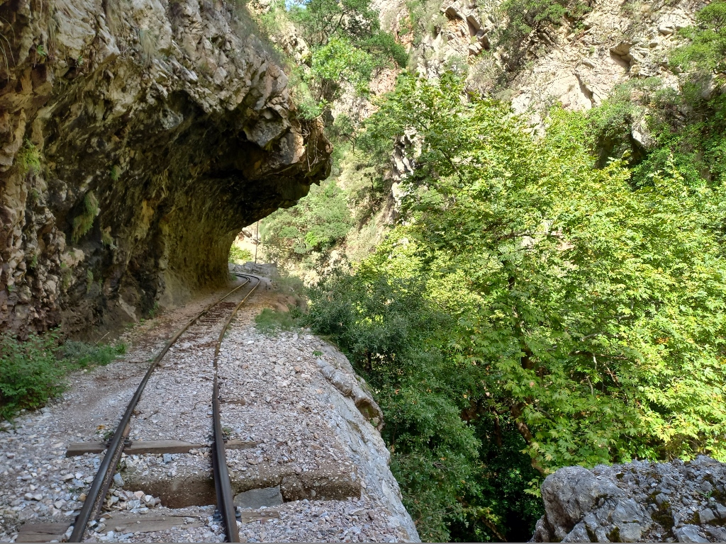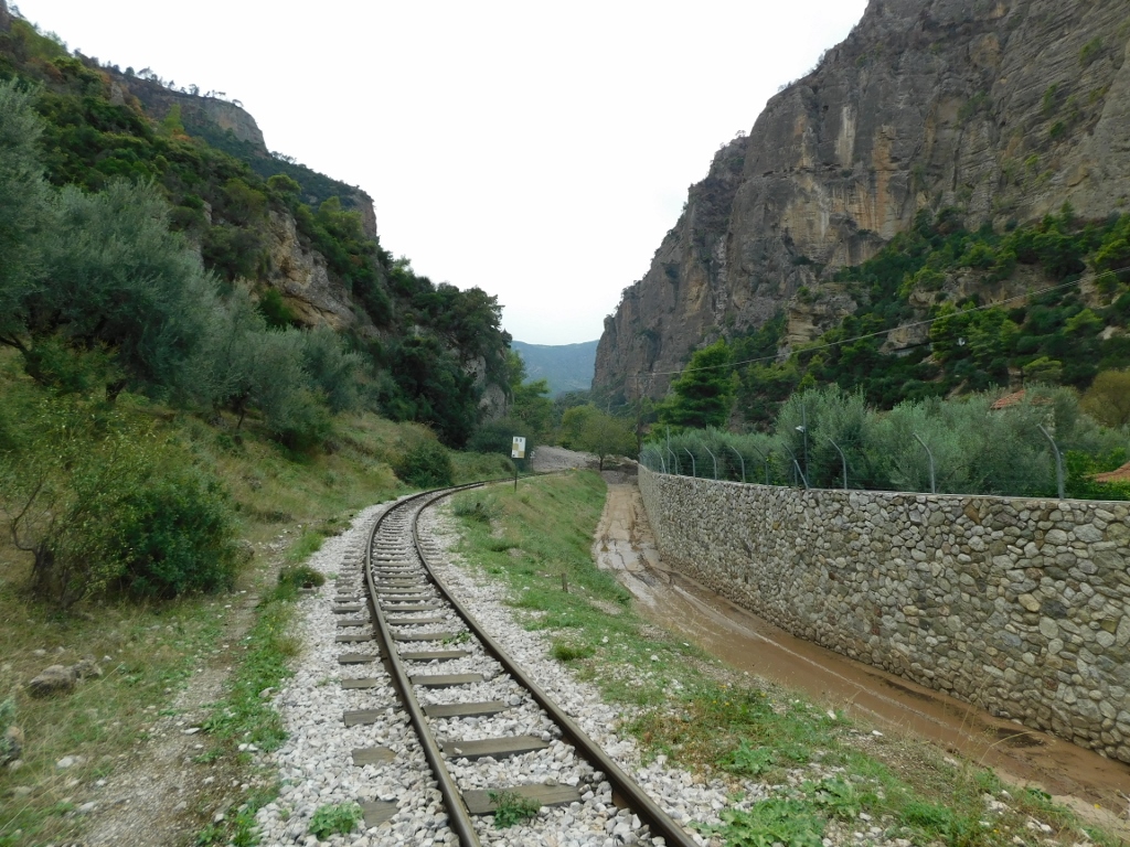 U vreme mog boravka u ovom delu Peloponeza, voz nije saobraćao zato što je prethodnih dana bilo puno kiša koje su dovele do odrona i klizišta, pa je pruga bila u prekidu. To ipak nije značilo da pešačku stazu koja praktično vodi duž pruge ne mogu da prođem peške.